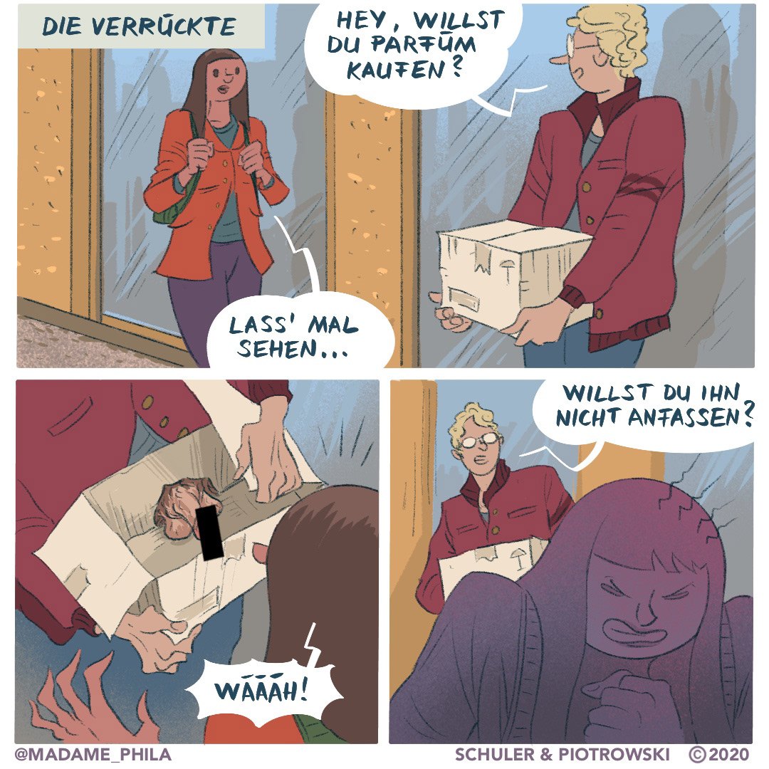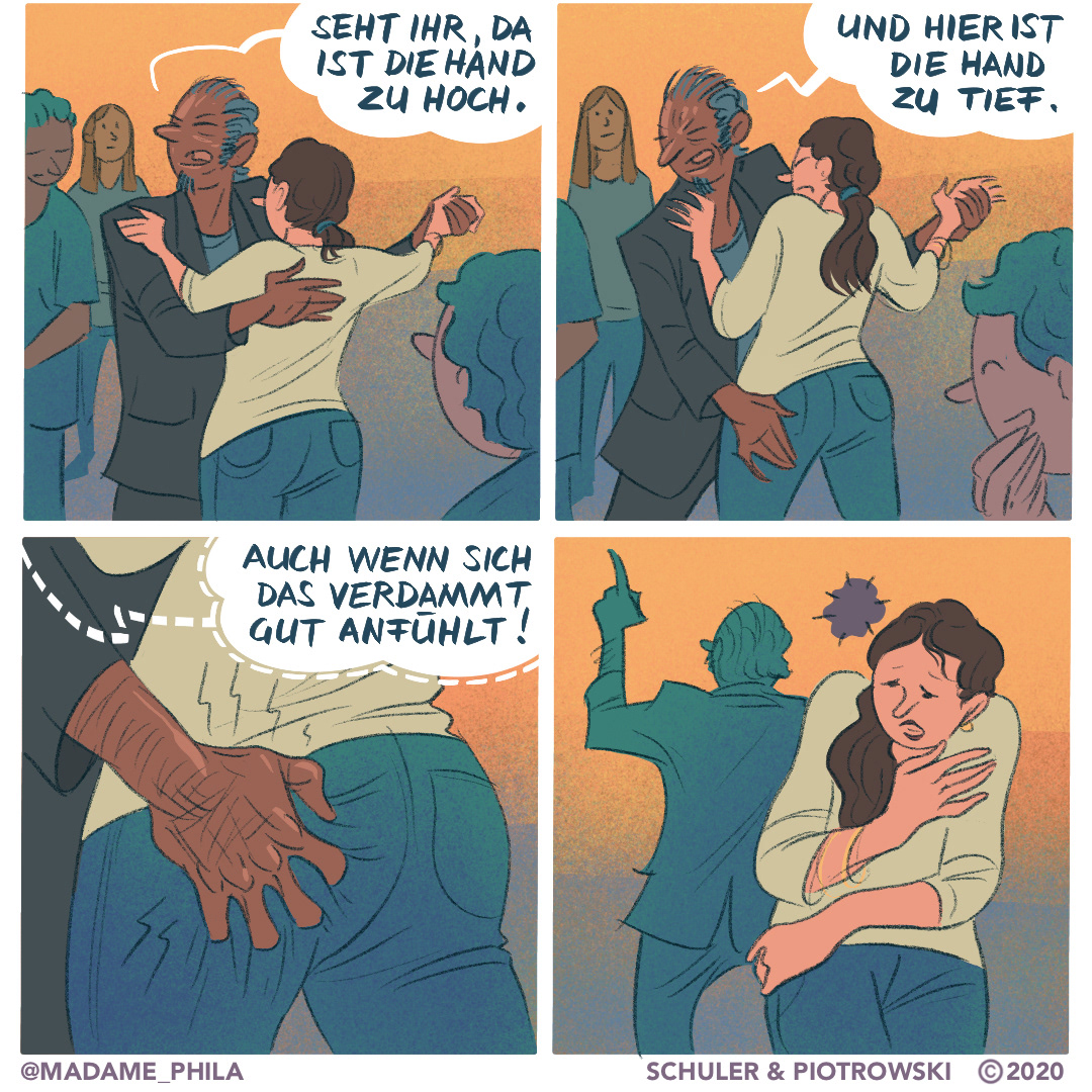 Madame Phila ist seit 2019 ein gemeinsames Instagram-Comicprojekt mit Nicole Schuler. Es sind wahre Geschichten, welche uns von der Community zugespielt werden. Die Comics zeigen die Komplexität rund um Sexismus und Gleichberechtigung auf. Die visuelle Umsetzung erlaubt uns, auch komplexe Sachverhalte und zum Teil explizite Inhalte (immer mit Trigger Warnung) für viele Lesende zugänglich und verständlich aufzubereiten. So konnten wir bereits mit Swiss Olympics, mit dem SOS Kinderdorf, dem Onlinemagazin Das Lamm und dem Kulturmagazin 041 kooperieren.